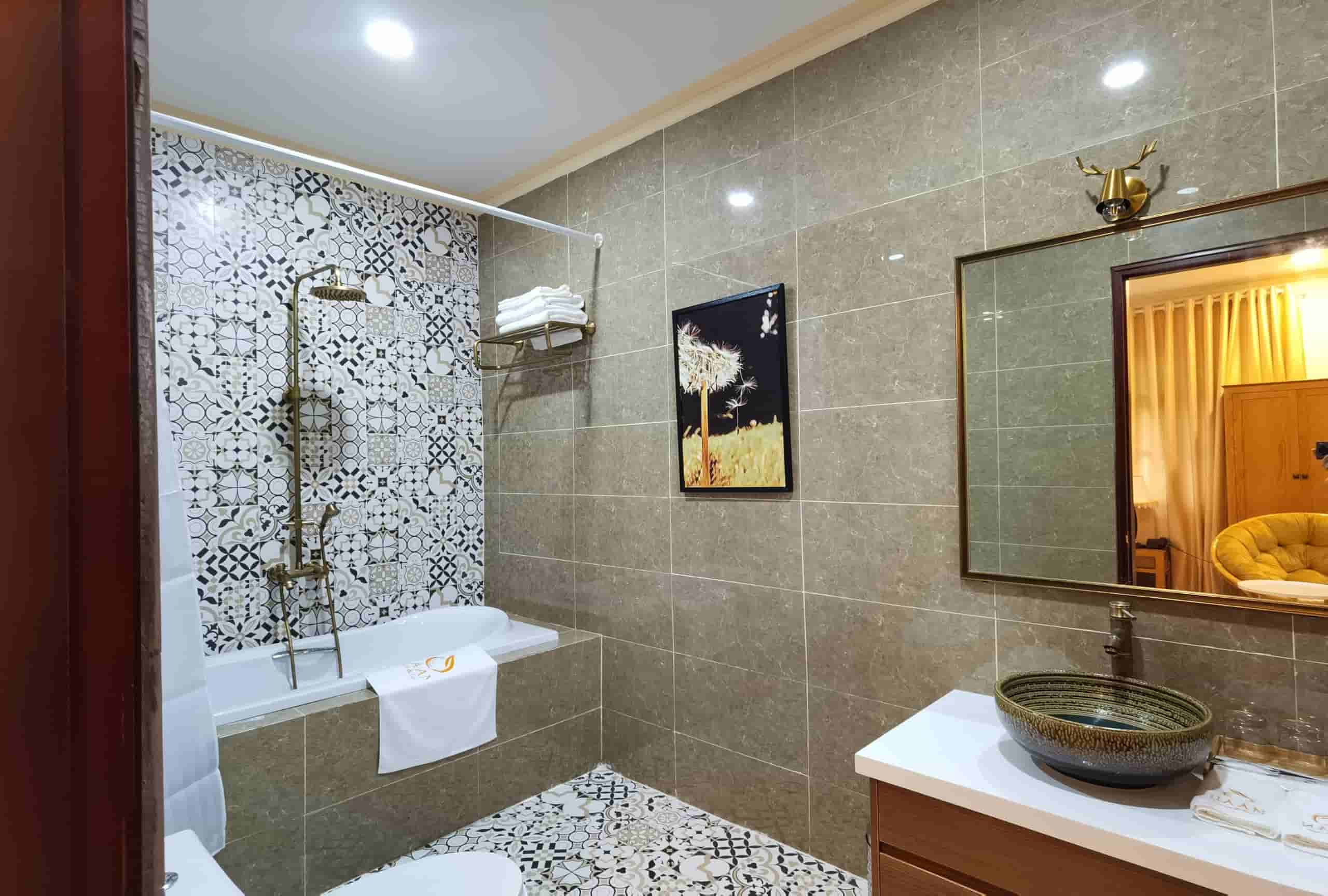 Phòng đôi Daisy rộng 35m2 – 45m2, bồn tắm nằm, giường King size cho 2 người lớn và 1 trẻ dưới 12 tuổi.